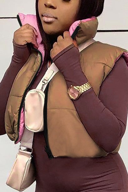 Contrasting color inside out reversible sleeveless vest casual bread cotton Coat