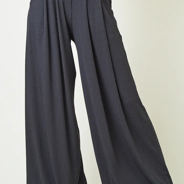 Your off-duty luxe. Flowing ribbed palazzos with a wide elastic waist and drape that feels like vacay—even on a Tuesday.