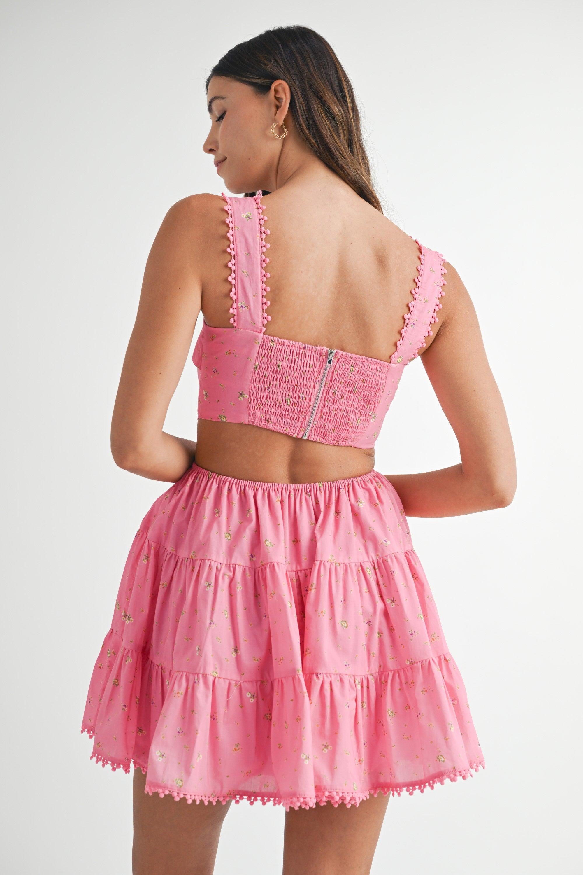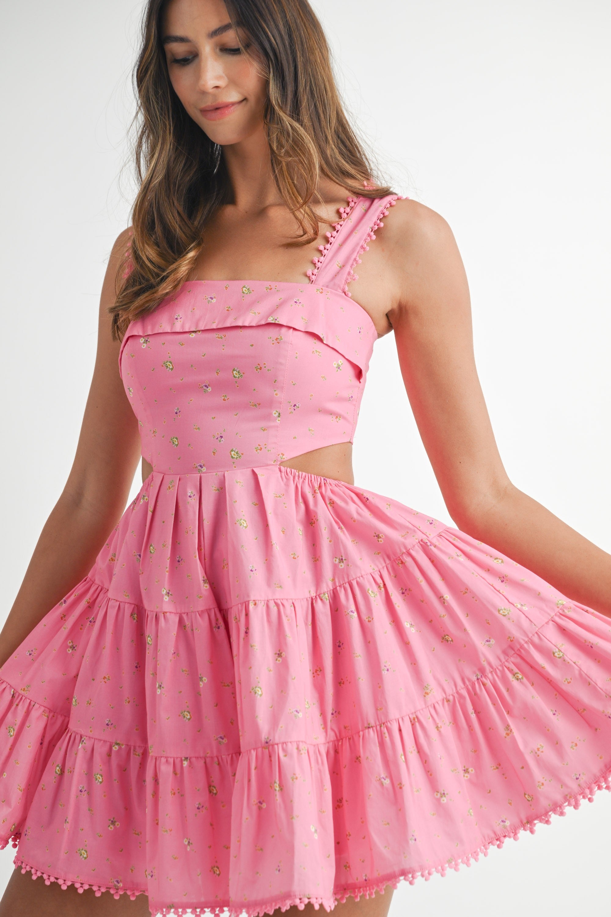 ntroducing the Daydream Darling Dress — the mini made for moments that feel straight out of a rom-com. This sleeveless babydoll beauty is covered in soft ditzy florals, trimmed with delicate eyelet lace, and finished with surprise side and back cut-outs that give just the right amount of flirt.